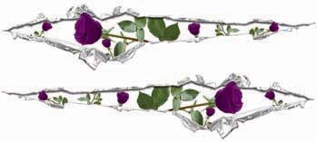 Ripped / Torn Metal Look Decals with Purple Roses - 30" h x 144" w