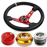 NRGSRK130HRG+200SL+101RD+006RDY, NRG Innovations 13.78" 350mm 3" Deep Dish Style Black Leather Yellow Center Marking Red Spokes Racing Steering Wheel Combo with 6 Hole Short Hub Adapter with Gen 2.0 Silver Quick Release with Red Lock Hub Kit SRK-130H